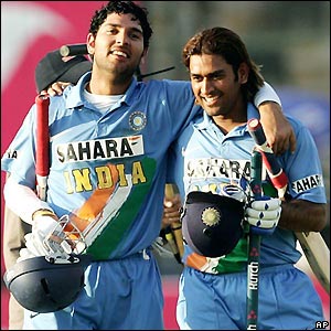 To the man of the match Dhoni and the man of the series, Yuvi.
